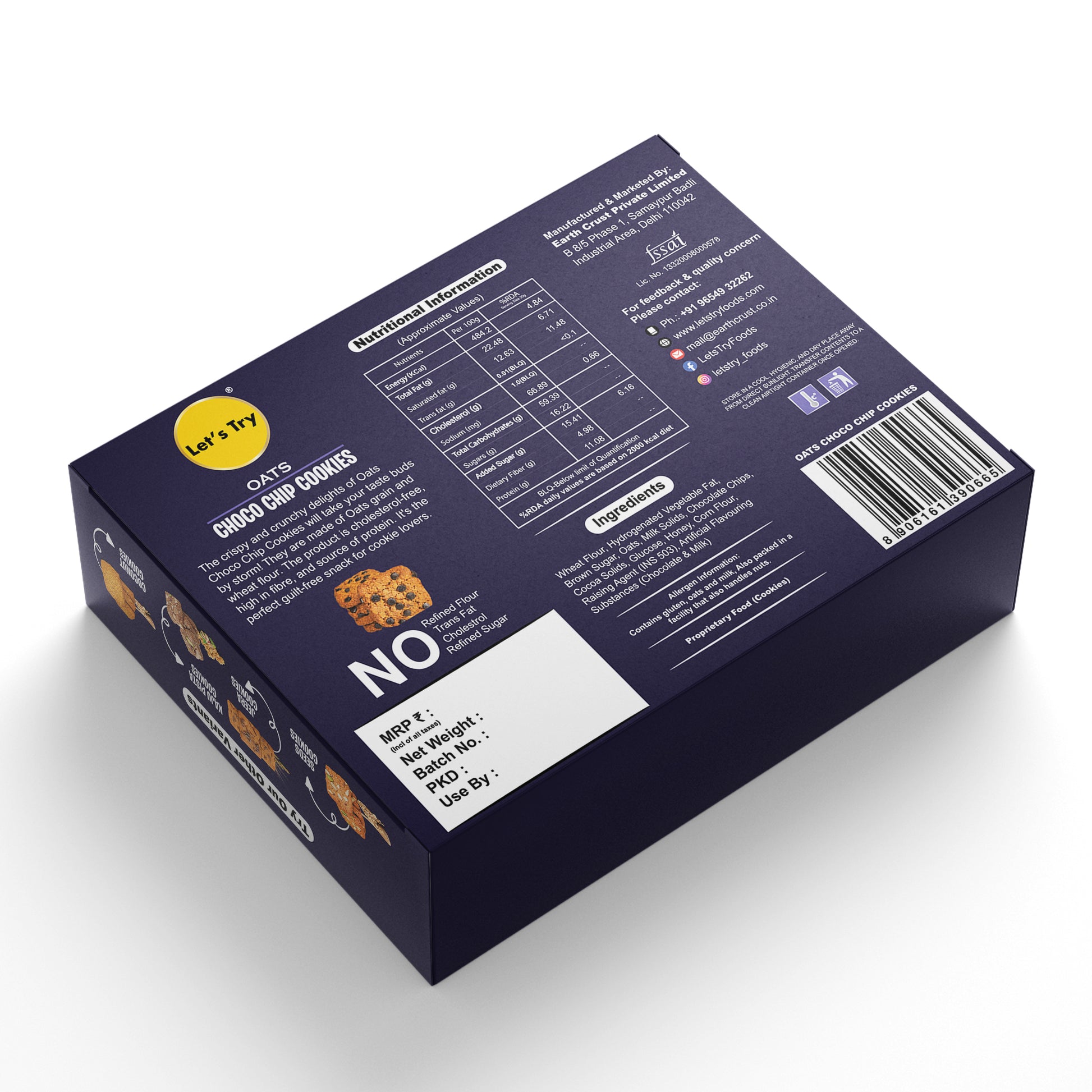 Let's Try Oats Choco Chip Cookies - 200g | No refined Flour (maida) | No White Sugar | Eggless Cookies | High Dietary Fiber | Healthy Cookies | No additives & Preservatives