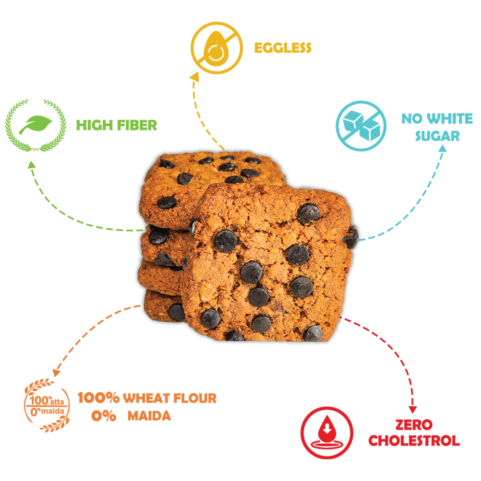 GUILT FREE SNACK : Now enjoy most loved choco chip cookies without any guilt.